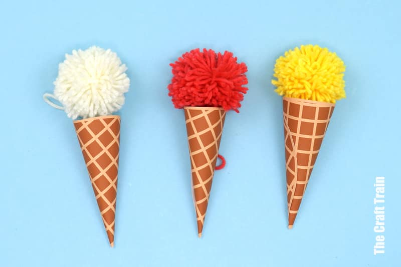 Make a classic ball and cup game with a Summer twist. The ice cream is attached to the cone by a long string. To play, toss the pom pom in the air and catch it with the cone. It’s a fun way for kids to practice hand-eye coordination.